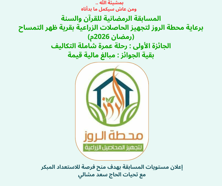 2- الاشتراك في المسابقة مفتوح فقط لكل متسابق من إيتاي البارود وذلك يشمل (المدينة ومجالس القرى وكل توابعها)